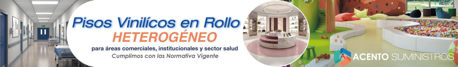 Los pisos o revestimientos vinílicos heterogeneo toman mucha fuerza en Colombia. En el mercado podemos conseguir varios formatos tipo rollo, de varios colores. Su característica principal es para el control de la limpieza y la asepsia para varias áreas como: laboratorios, consultorios, tiendas comerciales, jardines infantiles, colegios, centros institucionales, en el sector de la salud, Institucional y comercial.